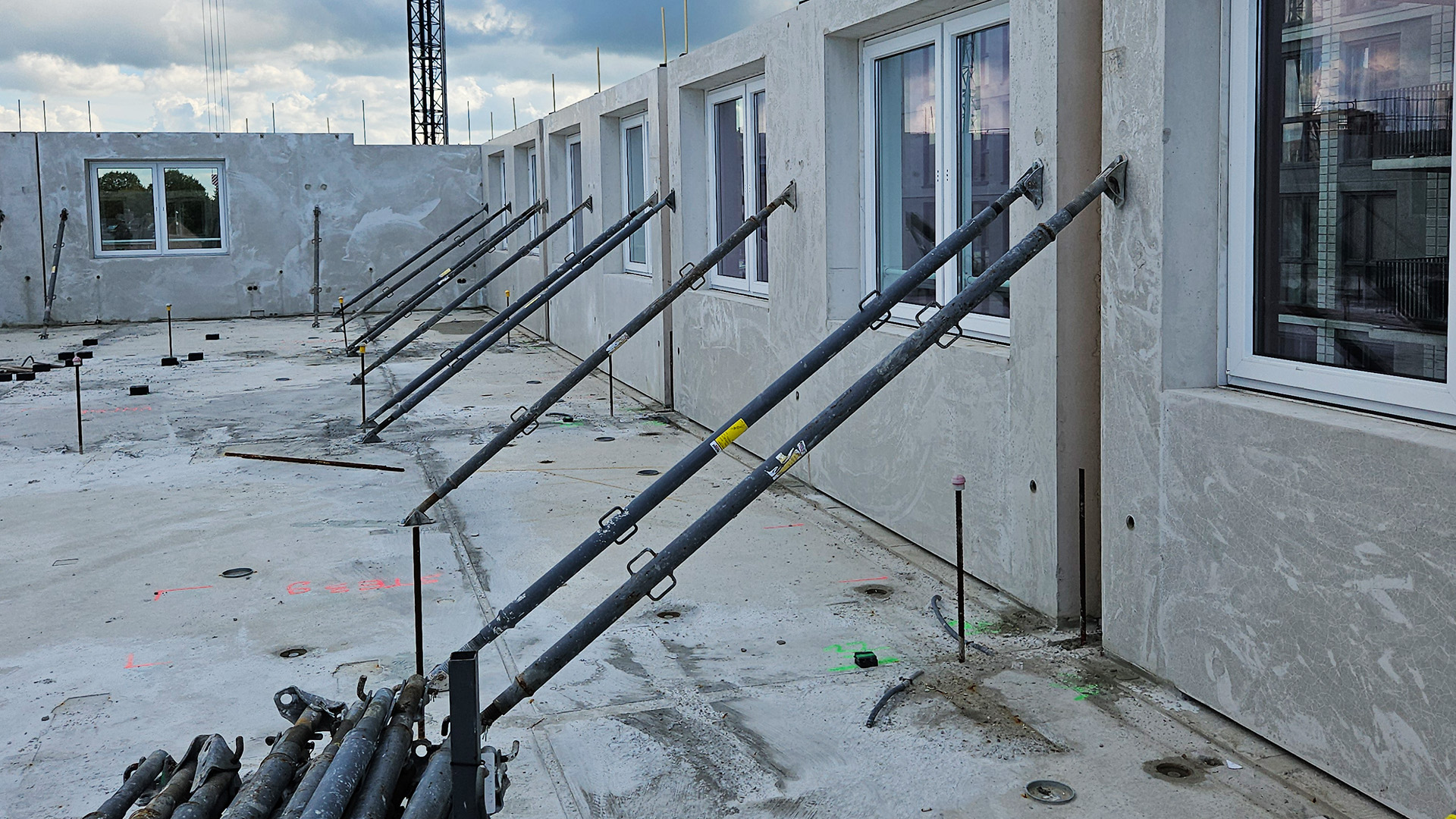 During the construction of 780 modern residential units in Leiden, the Netherlands our TITAN RSK push-pull props were used.