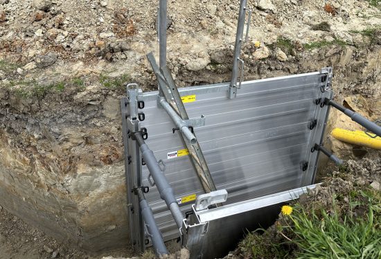 Safe access to trenches: Ladder support for GIGANT lightweight aluminium trench lining
