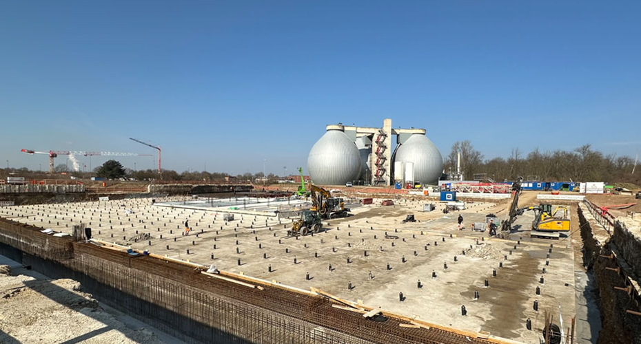As part of the renovation and expansion of the Düren group seage treatment plant, the combined water storage basins were modernised and equipped with an uplift protection system. For this purpose, around 900 TITAN 40/16 micropiles with a specially designed head construction were installed.