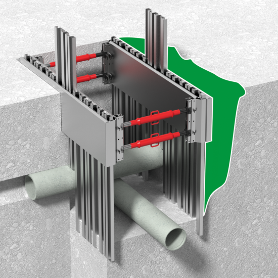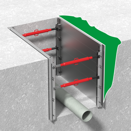 Please select the desired type of construction first. You can then individually adjust the length, width, and depth of the trench lining unit — the illustration next to the selection will update automatically.